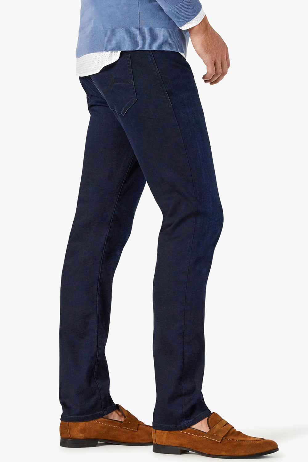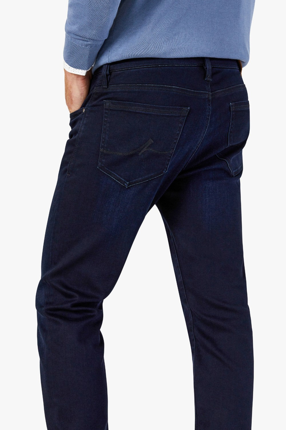 This ink wash jean is tailored with a mid-rise and tapered leg from the knee down for a contemporary straight fit. Featured in our Rome tencel denim which is lightweight and retains its shape wear after wear