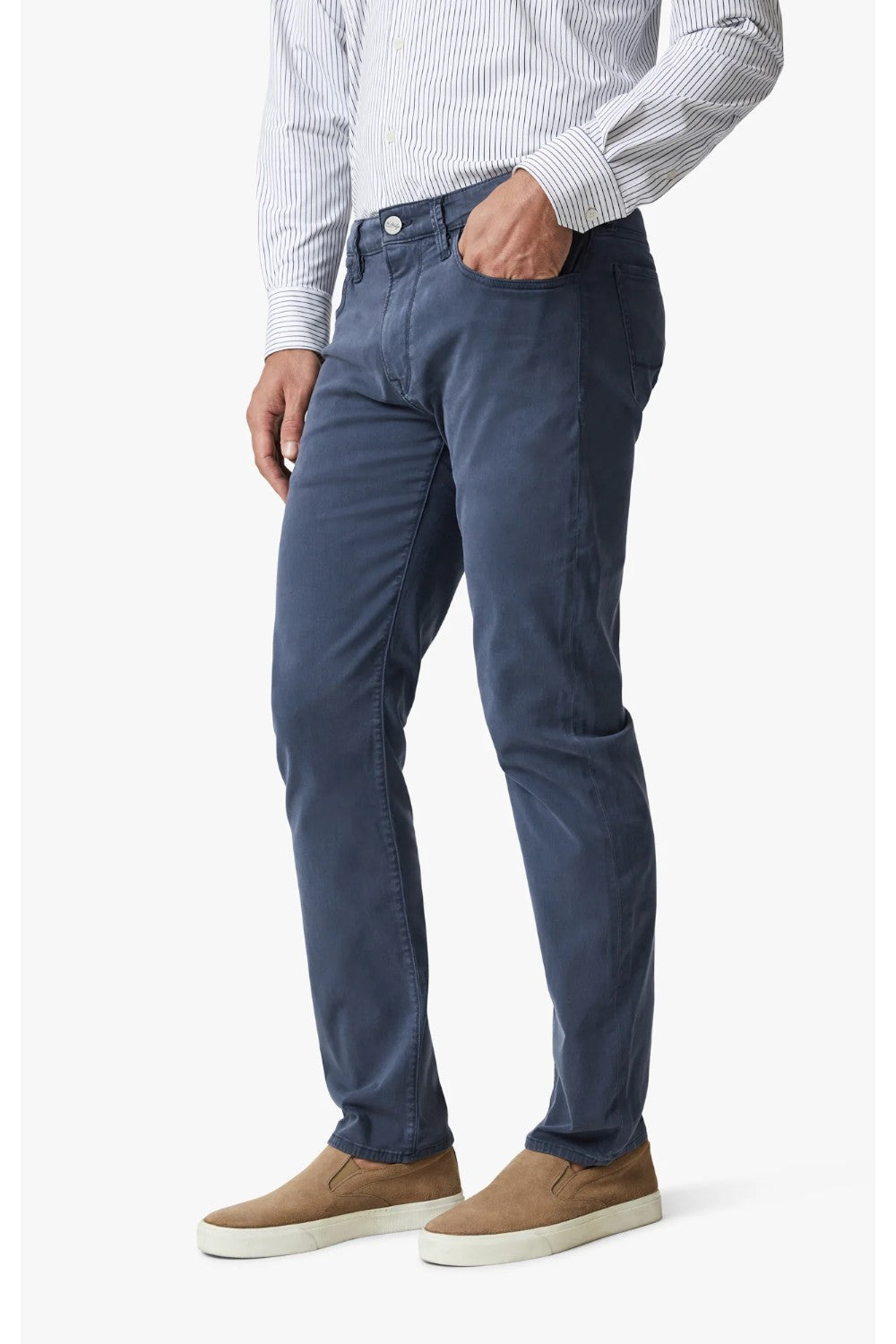 Elegant twill disguised as denim, this pant is finished in a dark navy hue to look like an elevated jean. Our Courage fit has a mid rise and straight leg that’s engineered to remove any excess fabric.