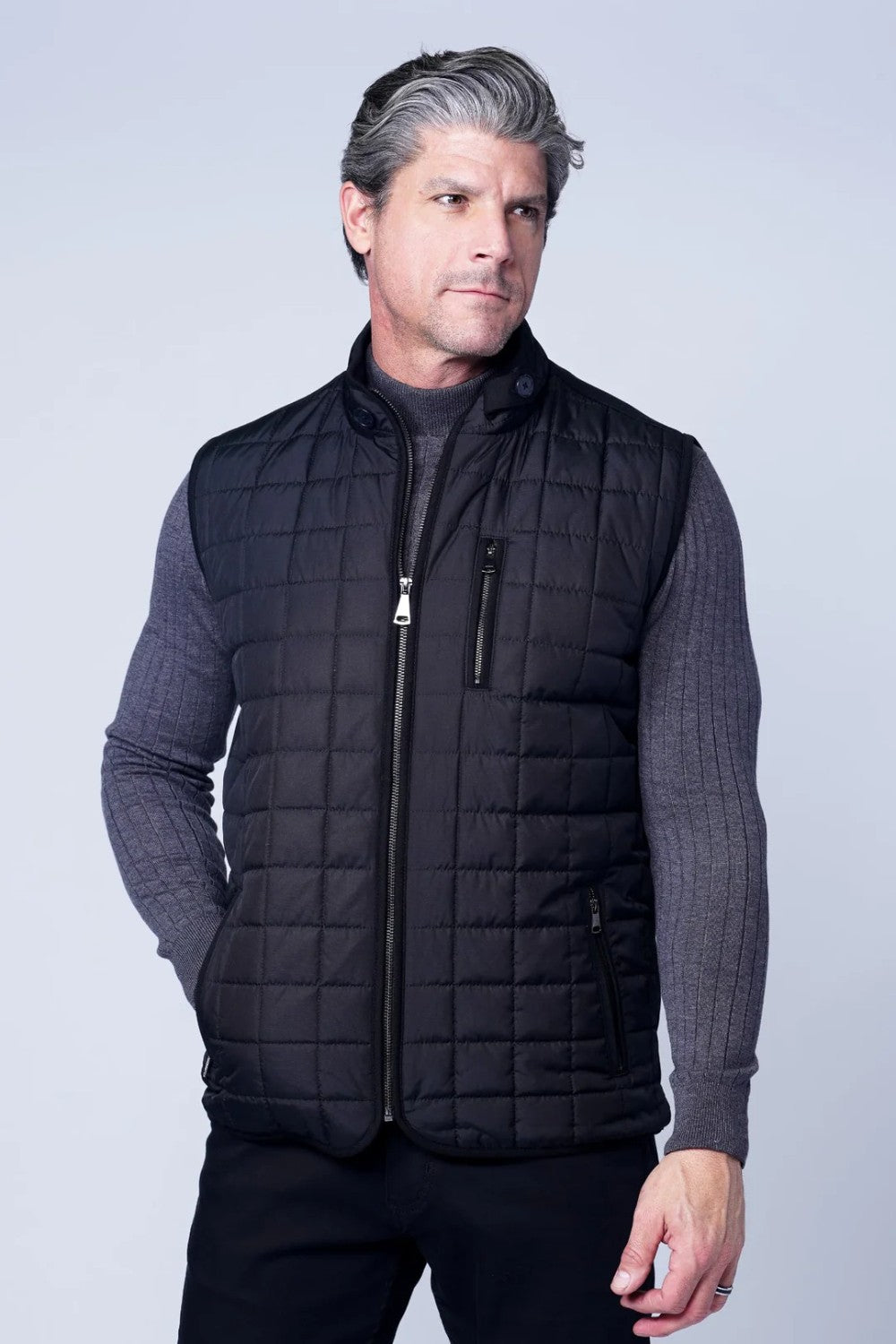 The Trenton Vest in Black combines sophisticated design with practical versatility. Its multi-colored fabric enhances any outfit, delivering a balanced look for both casual and professional settings. Designed to provide warmth without bulk, this vest is perfect for layering during transitional seasons, offering comfort and a refined silhouette for the discerning wearer.