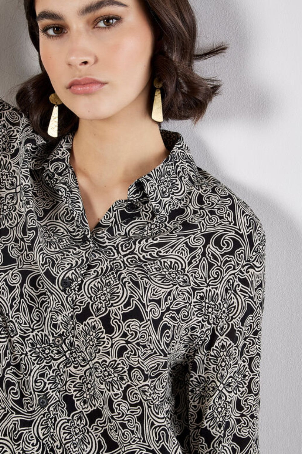 This Apricot Mono Paisley Sheer Shirt combines softness and elegance in a delicate, lightweight fabric. Its long sleeves offer graceful coverage, perfect for layering or wearing on their own. The paisley pattern adds a refined touch, making it an ideal choice for both casual and dressier occasions. Comfortable and stylish, this shirt supports a polished look with effortless sophistication.