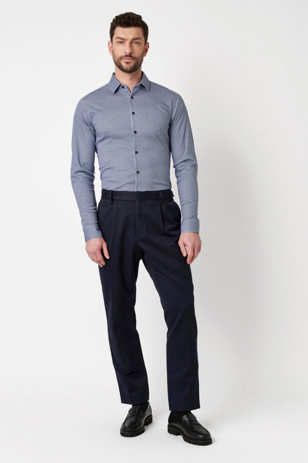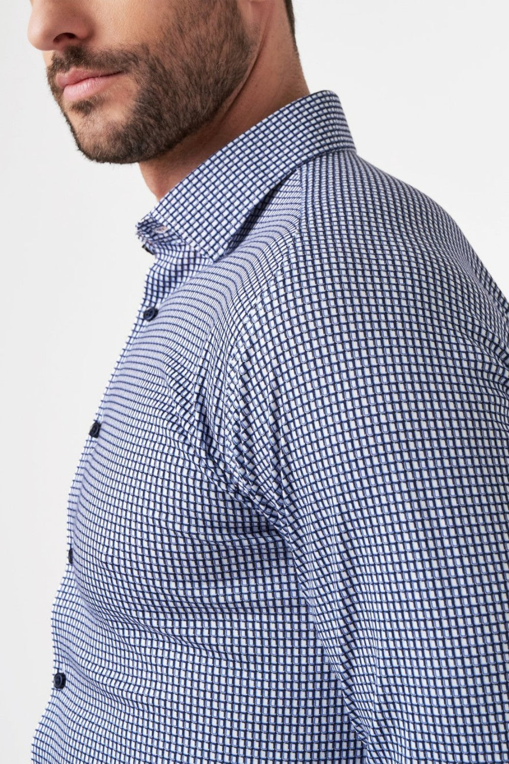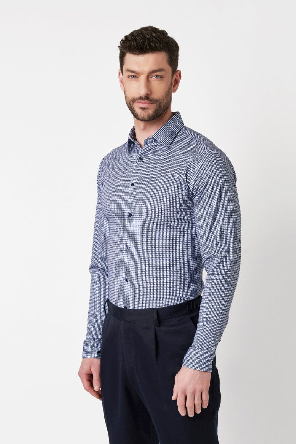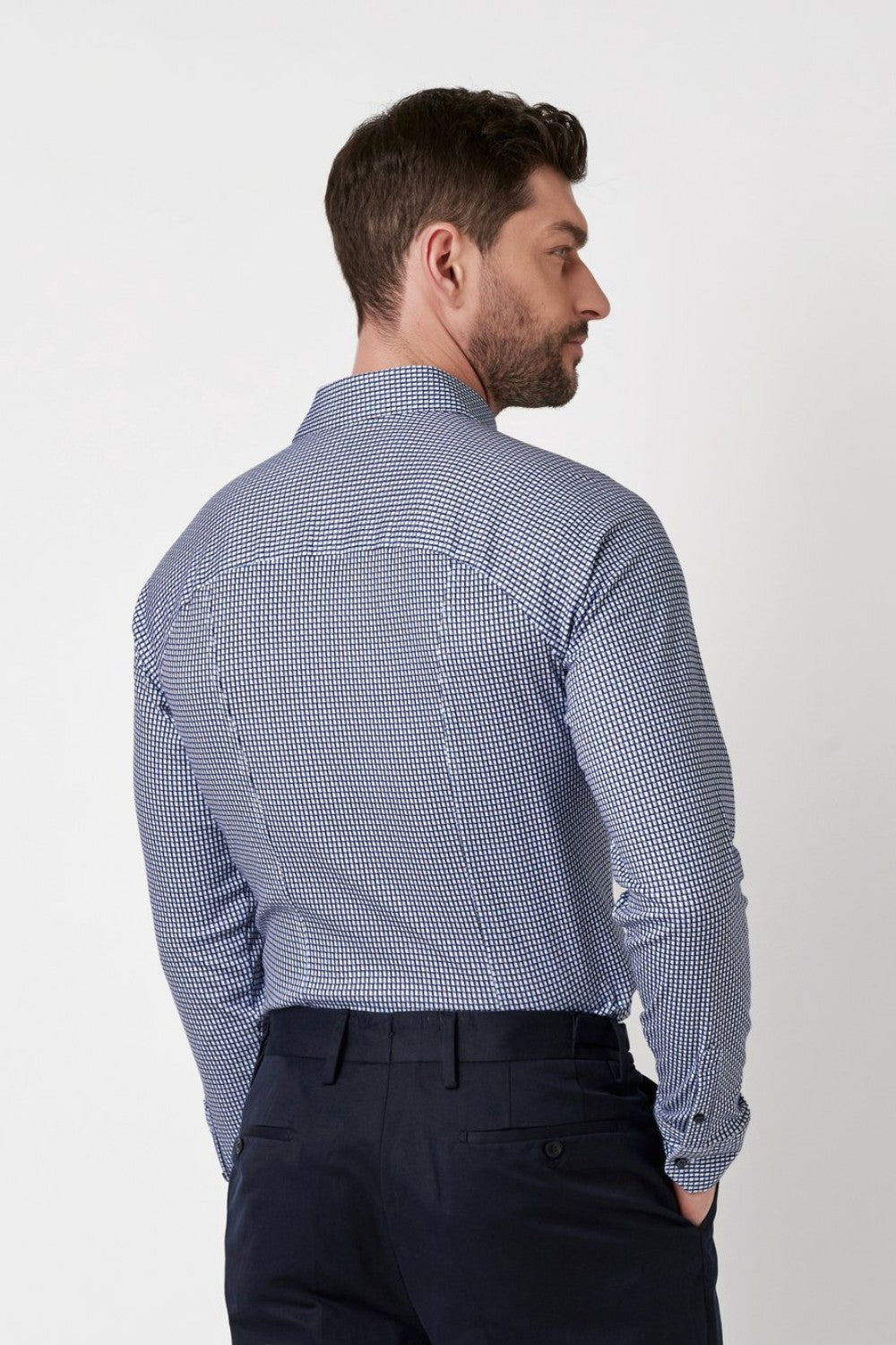 Desoto Kent Blue Square Print Long Sleeve Shirt