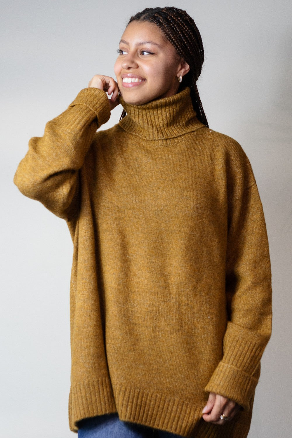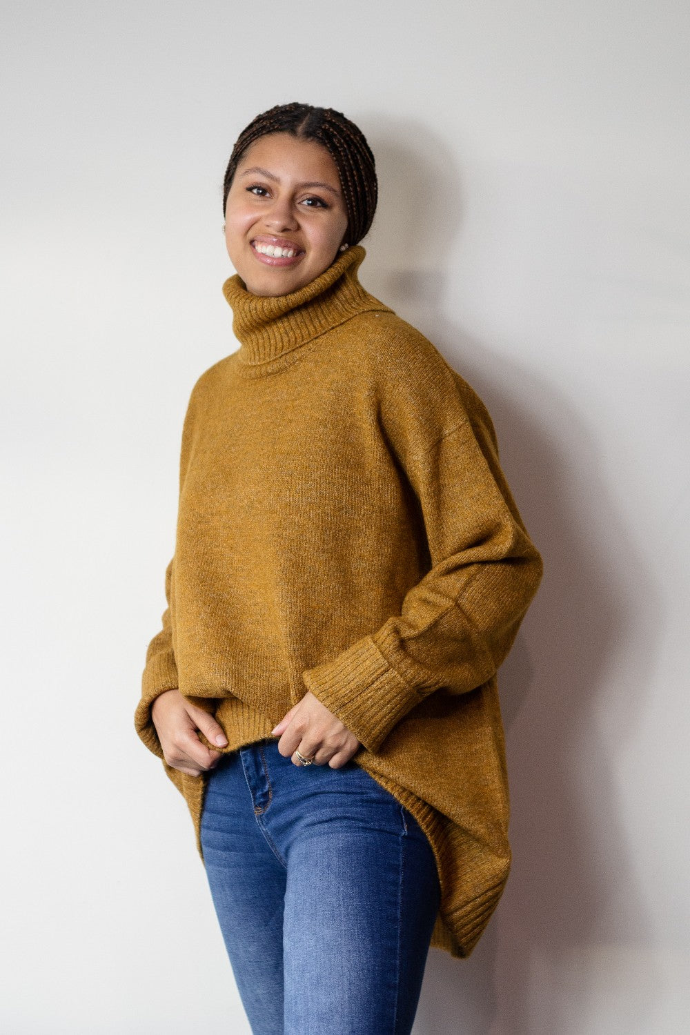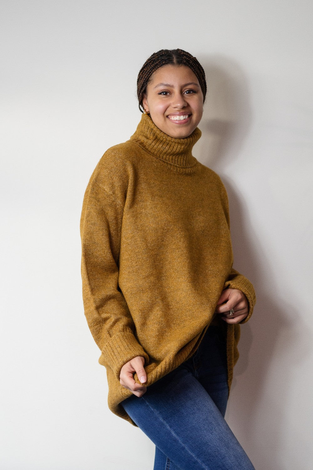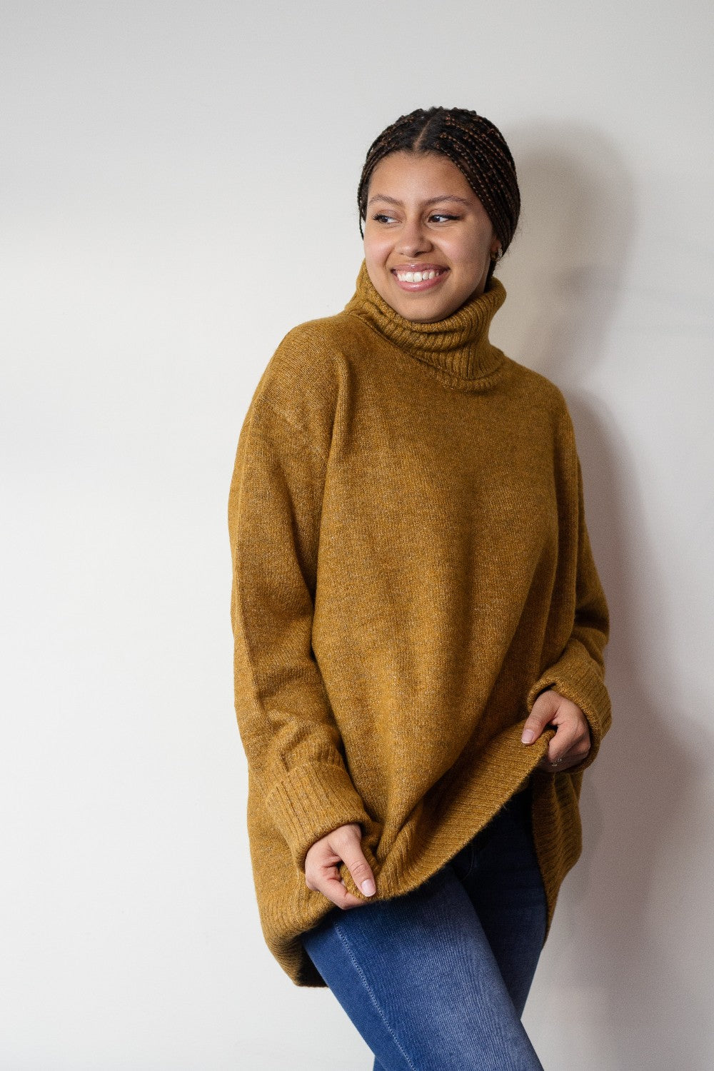 The Echo Verde Dog Walker chunky cowl neck sweater is a must have! With a ribbed wide neck and cuffs that can be folded back or worn straight and scrunched, it is the perfect piece to add to your wardrobe.
