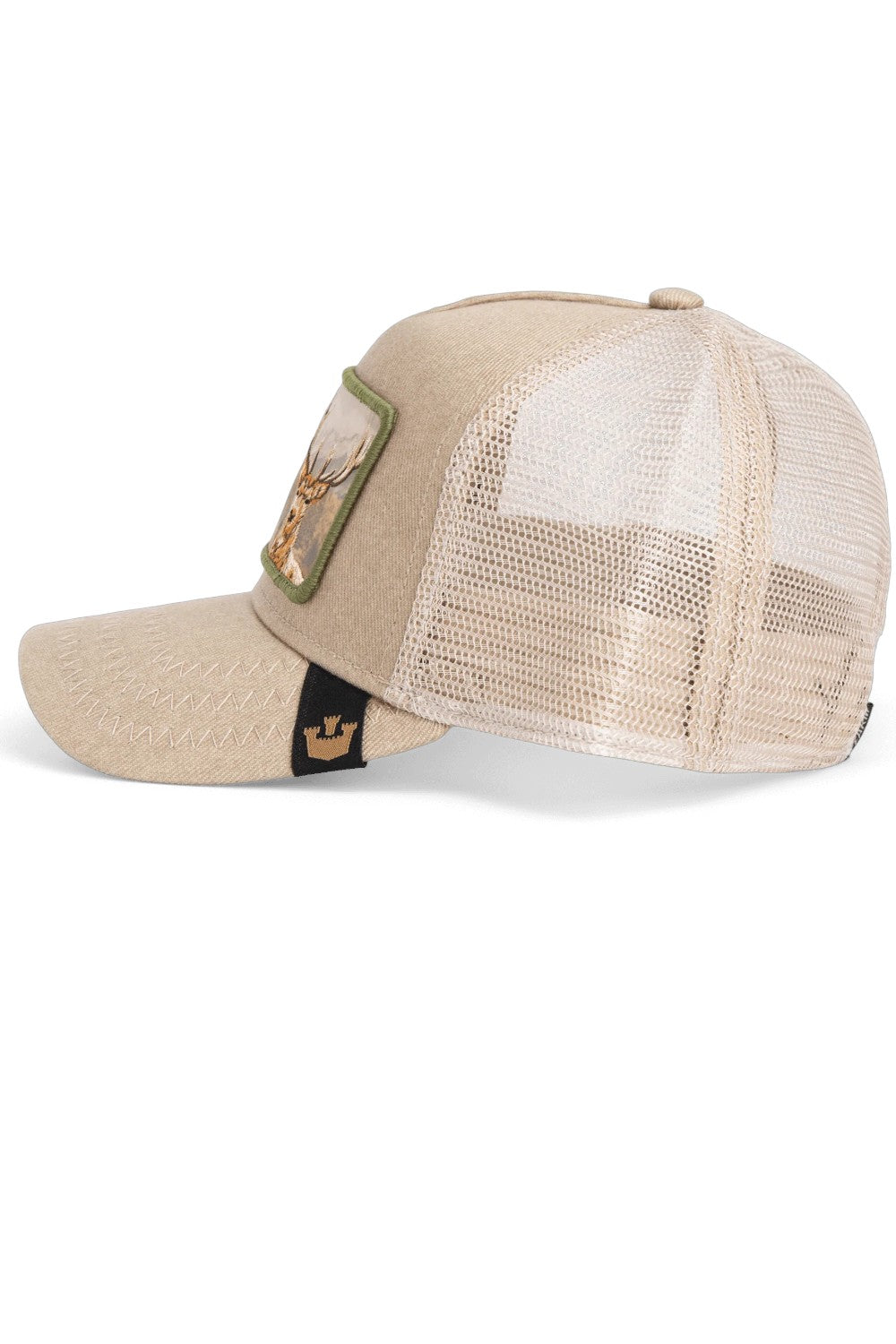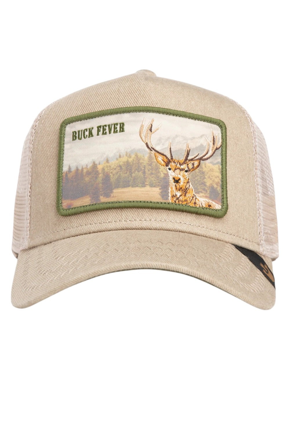 This cap captures that rush with a sharp-eyed buck standing tall against a misty mountain backdrop, staring straight through you. A rugged tan fabric and a weathered mesh back give it that broken-in, backwoods feel—like it’s been through a few early mornings and cold sunrises.