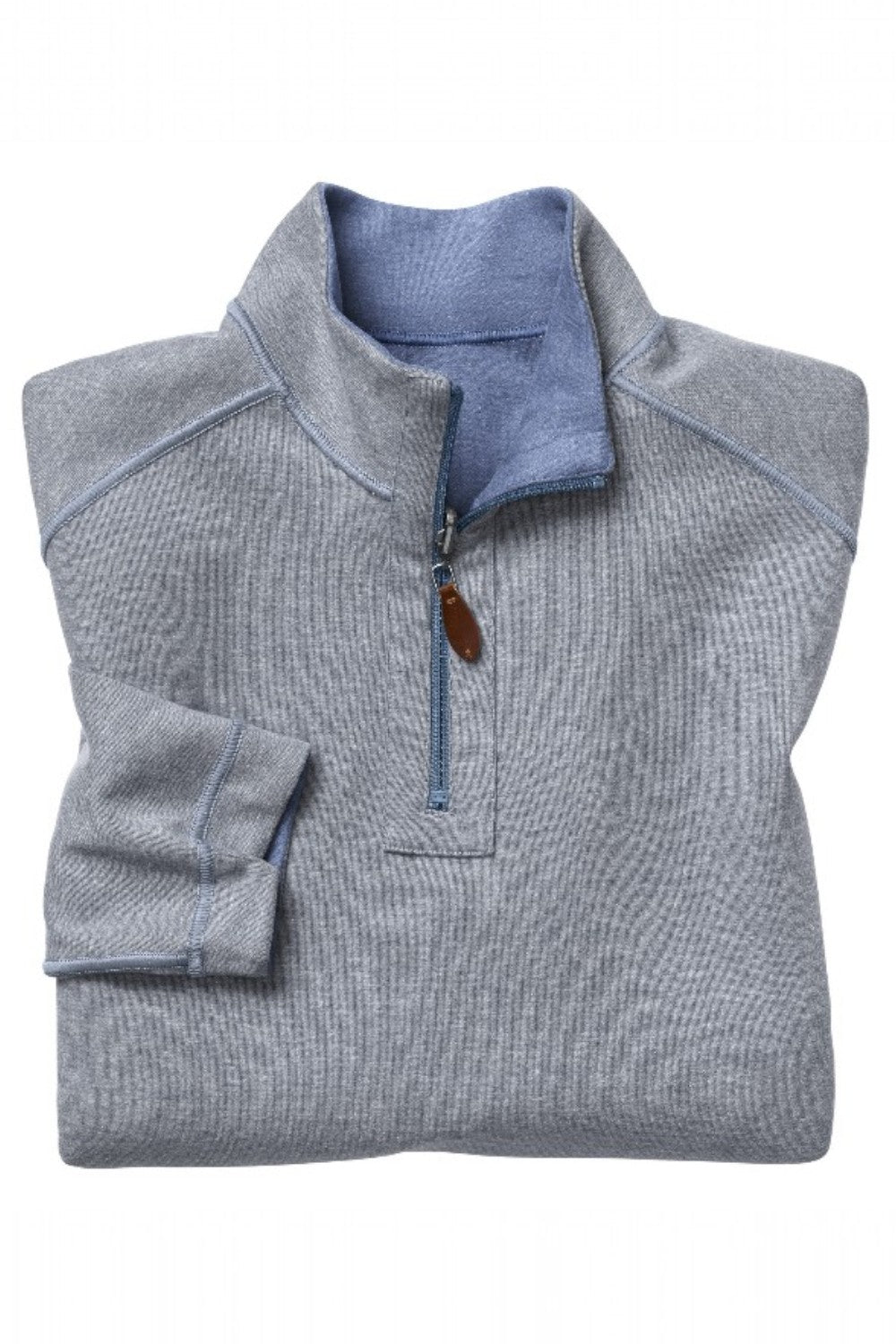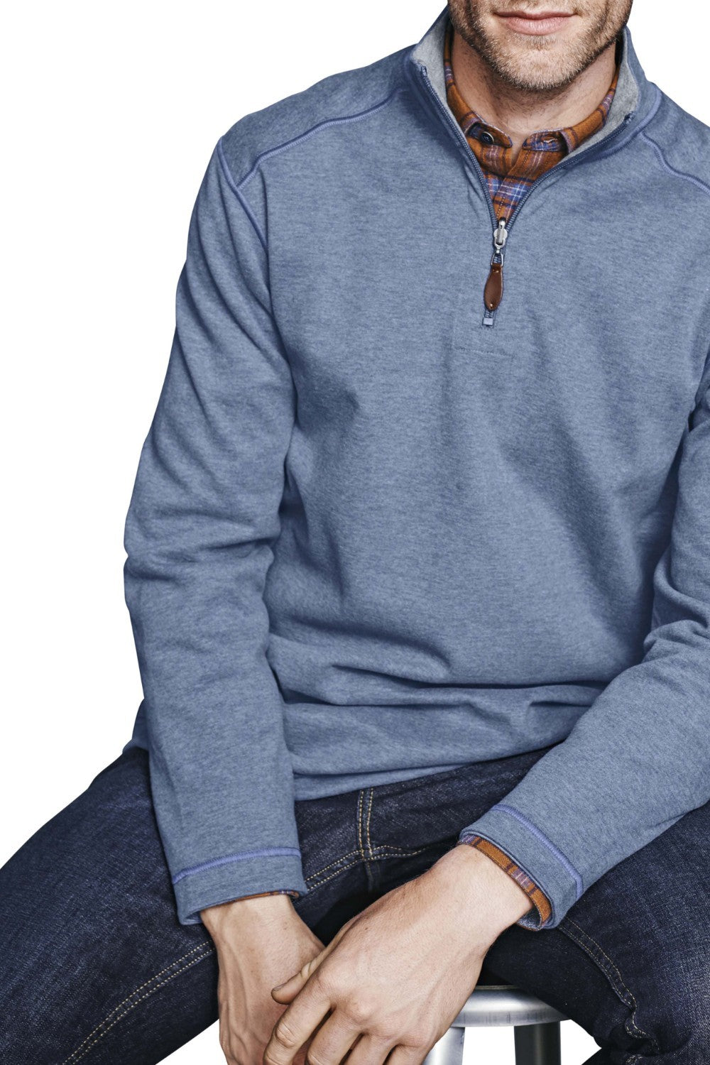 Get cozy and versatile with the Johnston & Murphy 1/4 zip Reversible Fleece. Keep warm and stylish with the soft cotton-blend knit that reverses from a solid to a coordinating heather shade, and stay practical with the quarter zip placket and leather-look pull. Perfect for any occasion with tonal cover-stitch details.
