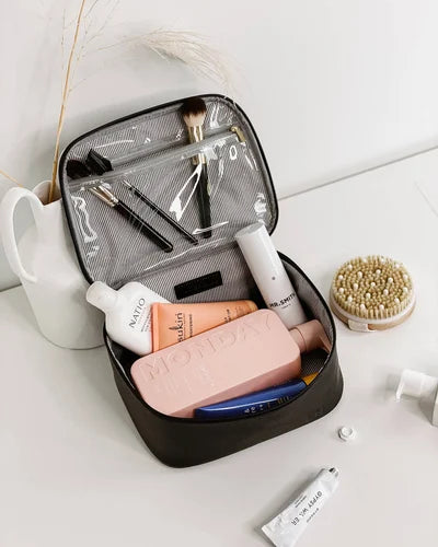 The Louenhide Baby Hepburn Cosmetic Case is an elegantly designed case to hold all of your favourite cosmetics, skincare or jewellery. This large cosmetic bag is a beautiful and feminine style that you will be proud to leave in the bathroom or nightstand. Matches to the Emma Hanging Toiletry Case.