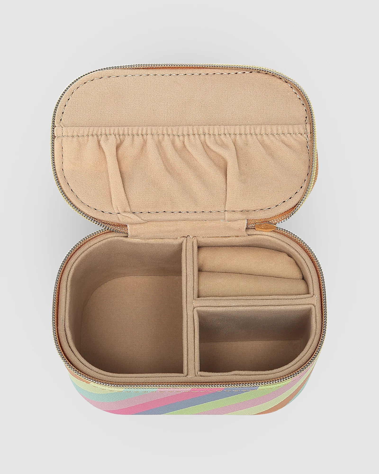 The Louenhide Olive Jewelry Box is a sweet oblong accessories box perfect for travel or everyday use. Keep your jewelry safe and secure in Olive’s separate compartments, elasticated pocket, and ring rolls. This affordable jewelry case is versatile and will fit comfortably in your handbag for on-the-go styling!