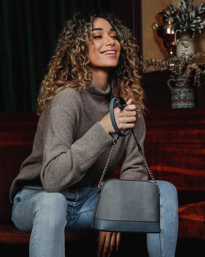 The Louenhide Tori Bag is a sophisticated evening bag with a domed body shape. The adjustable chain detailing adds a touch of luxury to the bag, allowing you to effortlessly level up your look. Featuring a suedette finished lizard print and contrast panels, this bag is both gorgeous and tactile. This compact crossbody bag is designed with functionality in mind, featuring ample space and security for your favourite products with one zip pocket and two slip pockets. There is an additional back side zip pocket on the exterior of the bag perfect quick access items like bank cards or ID.