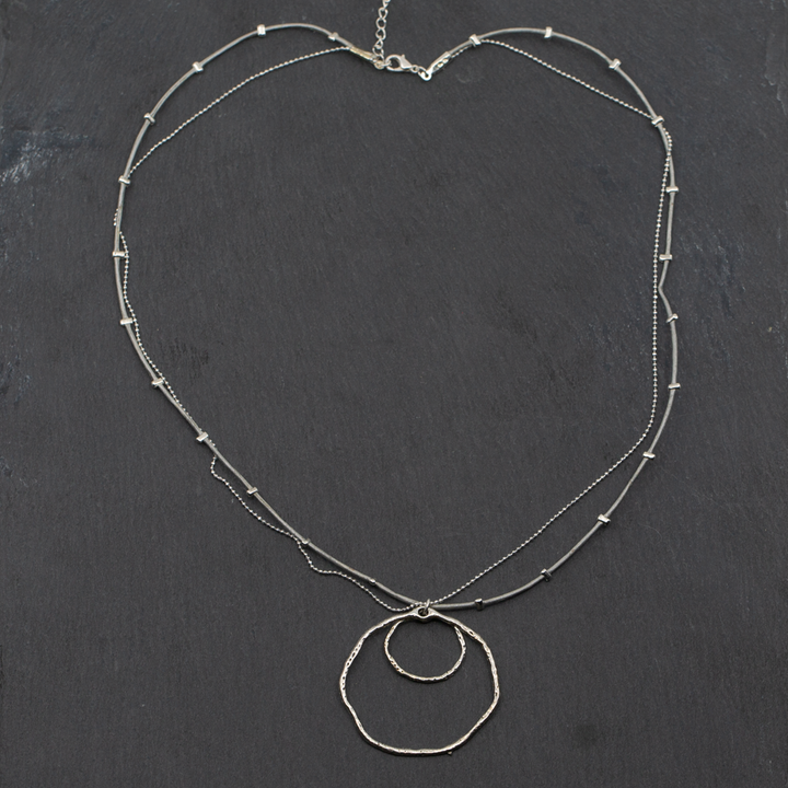 Suzie Blue Beaten Double Ring Necklace in Silver Plate