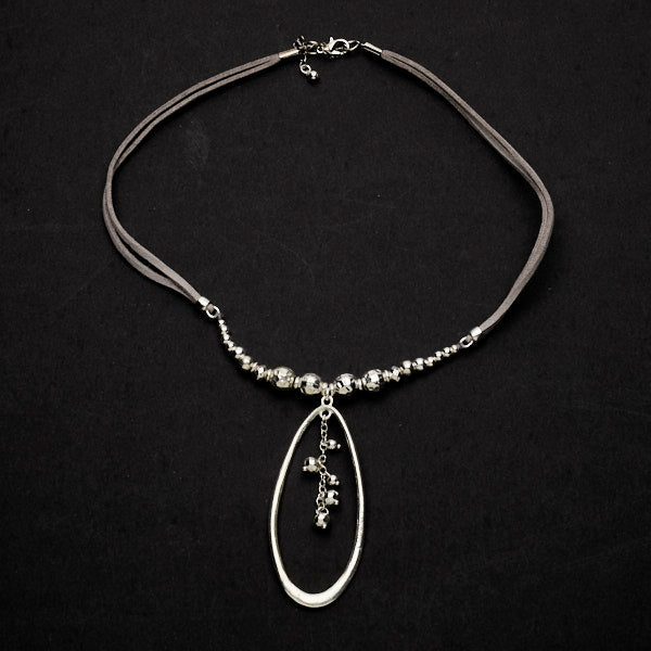 Suzie Blue Silver Plate Oval Beaded Pendant Necklace on Suede