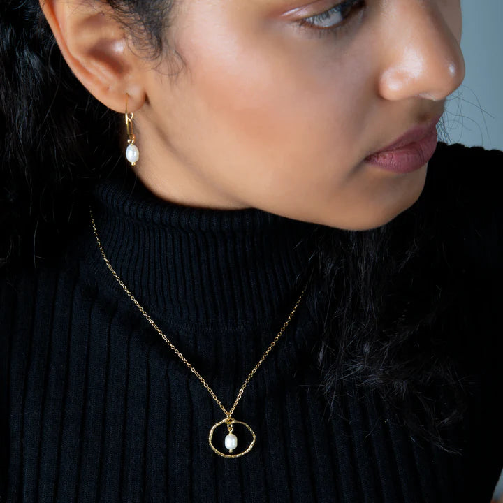 Suzie Blue Simple Ring & Pearl Necklace In Gold Plate