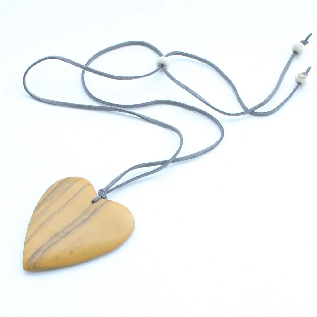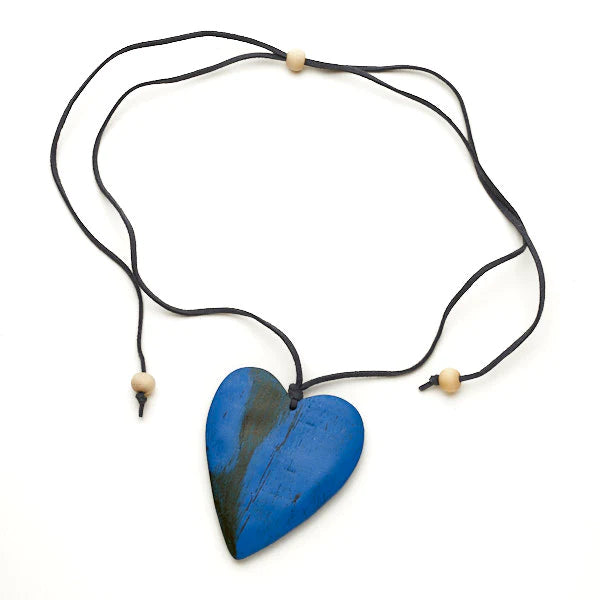 Wear your heart on your sleeve with this classic tinted wood necklace. It is handmade and ethically sourced from Bali.